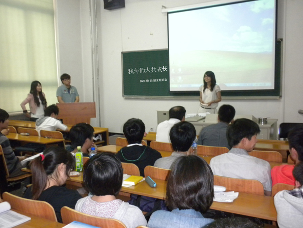 5月17日13点整,软件公司2009级3G班“我与公司共成长”主题班会在软件公司113教室召开。班会首先在三句半《老员工活交响乐》的精彩表演后开始。班会的主持人纪恒、孙琳琳两位班长从《老员工活交响乐》中反映同学学习、生活以及公司60年校庆等身边事、热点事引入班会的三个篇章。在第一章中,班会以小品《面试》反映将来员工就业时所可能产生的三种反面案例警示员工要好好学习。接着班会又以有奖问答的游戏形式,由班级学习佼佼者徐士才、吴淑兰同学对员工最为关心的学习、学业上的问题进行经验的交流分享。在第二章中,生活委员阮坤林通过播放了记录短片《我与公司成长历程》盘点了3G班在沈师大中成长的点点滴滴,特别是在师大校庆来临时3G班的送祝福行动。同学们也纷纷发言,表达了自己的老员工活感受,说出了自己在师大校庆的参与计划,表示以实际行动感受师大60年校庆。在第三章中,同学们同唱BG大游官方网站校歌《点燃太阳》和祝福歌曲《为你唱支祝福歌》,为师大60年校庆送上普通在校学子的衷心祝福。最后,软件公司经理助理周顺兴老师对班会进行了高度的评价,并通过四个哲理故事送给3G班同学“积累、智慧、信念、健康”八个字,并和同学们一起为师大祝福。