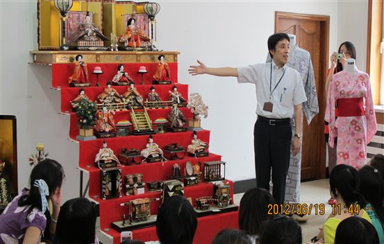 参观访问的第三个部分,同学们在新馆2楼的文化宣传展区听取了文化领事大谷英树先生对日本文化的介绍。主要包括女孩节偶人、五月偶人、浮世绘等传统文化展示和动漫等现代文化展示的讲解。之后,大家一起体验了托球游戏、达磨下降等日本传统玩具的玩法,大谷先生所展示的精彩技艺,博得了参观者的高声喝彩。