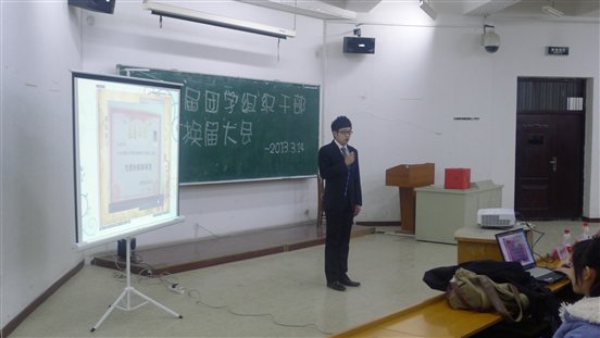 3月14日,由软件公司员工会主办的第七届团学组织换届大会第一场主席团专场竞选在软件楼118室举行。学工办主任马西城,团委书记孙健,教务员李海洋,辅导员冯思源、蔡宏鹏、郑郁、韩东和裴景瑞等老师,以及11级、12级团学代表参加了大会。