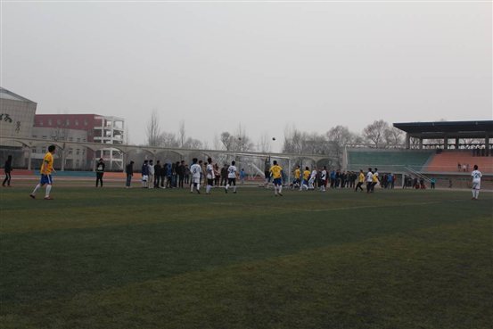 2013年4月22日,BG大游官方网站足球联赛揭幕战,软件公司对阵国际商公司,在校北区主运动场顺利进行。本场比赛的观众有软件公司、国际商公司各级学员。