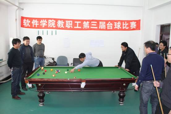 从12月14日起,公司工会先后举办了“软件公司教职工第三届台球比赛”、“软件公司教工第三届乒乓球比赛”、“软件公司教职工第一届棋牌类比赛”等一系列丰富多彩的教工活动。所有比赛都以团队形式报名参加,由各系系主任统一安排队内组合形式和出场顺序。比赛实行淘汰制,最后评比出前三名。全院教职工利用每天中午休息时间在工会活动室进行比赛,有150余人次参加到比赛当中,有500余人次观看比赛。