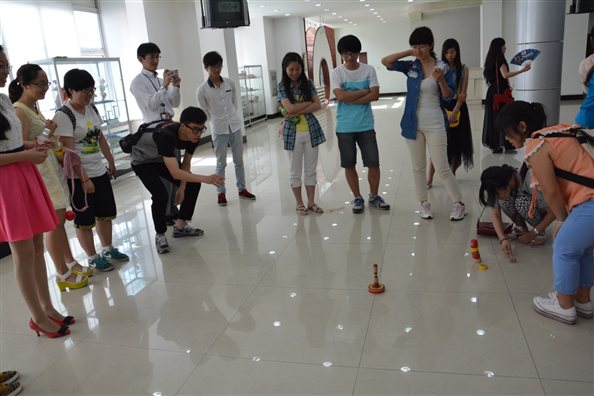 在日本领事馆内,同学们先通过一段精彩的视频展示,了解了日本的风土人情和文化特色,再经文化参赞对领事馆内各项独具特色的展品依次介绍,同学们表现了对日本文化浓厚的兴趣。讲解结束后,同学们根据自己的兴趣,对不同的日本民族展品进行了亲身体验。其中,日本的端茶偶人引起了同学们极大的兴趣。小小的人偶双手捧着茶盘,把茶杯放在茶盘上,它便会向前走,把茶端给客人,客人喝完茶把茶杯放回茶盘上时,它就又转回原来的地方。在讲解员的演示后,同学们对端茶偶人进行了有趣的体验。此外,还有剑球、 江户陀螺、日本风筝等,都引起了同学们极大的兴趣,带给了大家不一样的日本文化体验,深深感受到日本文化的魅力。活动结束后,工作室成员合影留念,同时也表达了对领事馆工作人员的感谢。