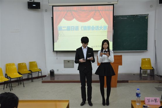 近日,由软件公司星之光日语工作室举行办星之光第二届日语情景会话大赛决赛在软件公司118教室举行大赛由工作室会长任婉军携2013级日语班徐强主持,评委由刘丽、初子墨和梁秋慧等日语教师担任。