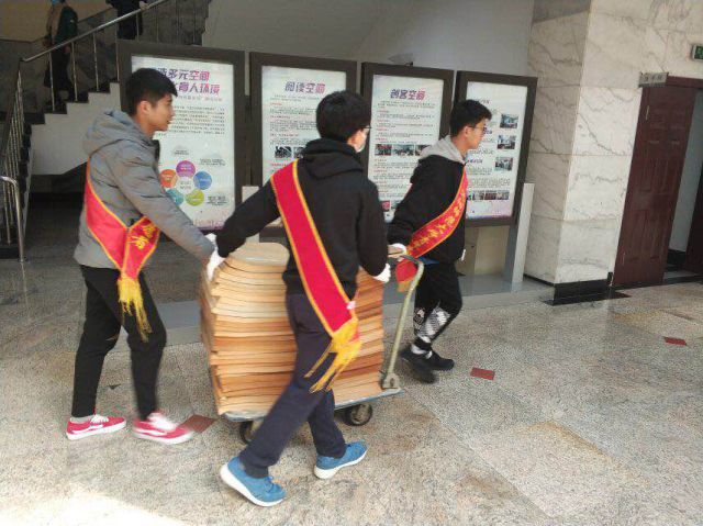 活动结束后,图书馆的老师为志愿者们送来矿泉水,并且夸奖志愿者们工作态度认真,一丝不苟,有一定的工作效率,这对志愿者们来说是最好的回复。