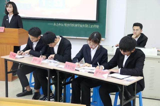 为提高员工们的逻辑思辨能力和口头表达能力,培养员工们团队协作精神,软件公司勤工助学部于6月6日晚18:00在软件122教室举办软件公司第一届双创文化节系列子活动之“创新科技,辩途争锋”辩论赛决赛。软件公司团委书记郑郁老师,员工工作办公室王云鹤老师,夏宇老师,软件公司团委副书记邹诗萌,员工会主席于大起出席本次活动。
