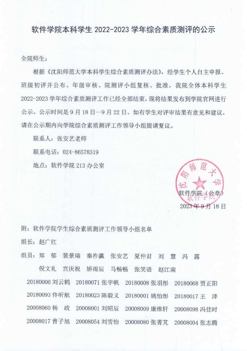 关于软件公司本科员工2022-2023学年综合素质测评的公示