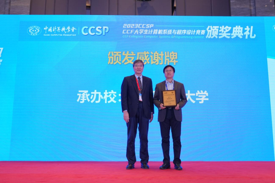 为感谢公司在承办CCSP过程中的出色贡献,CCF为公司制作了感谢牌,由CCF秘书长唐卫清颁发,软件公司李航经理代表公司上台领取感谢牌。