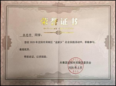 在辽宁沈阳浑南区五三街道文溯社区里,张恩侨同学既是春联书写志愿者,又是资料分类员。他参与整理多本政策法规文件,制作分类表格;在扫雪清障中扛起铁锹,在走访调研中记录民情。他用专业技能搭建社区信息桥梁,用实际行动践行微光可成炬的信念。