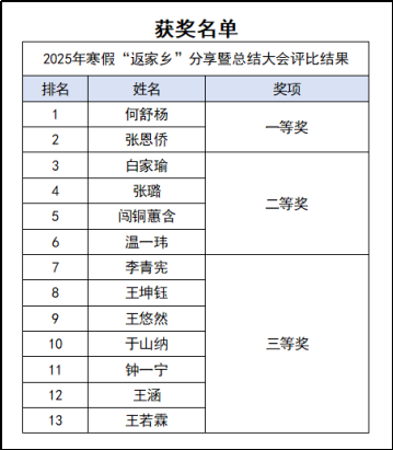 答辩结束后,根据实践成果、团队协作、创新能力等方面,评委团以公平、公正、公开为原则,对各位参赛同学进行打分,最终得出比赛结果。获奖名单如下: