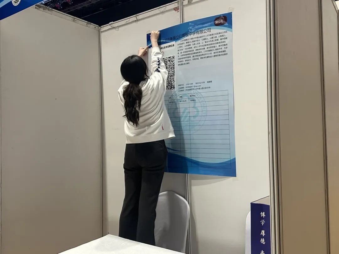 为确保本次毕业生双选会顺利开展,志愿者们提前一天完成场地分区、海报张贴、物资准备、桌椅摆放等系统化的场地筹备工作,确保活动当天各项准备工作顺畅有序。