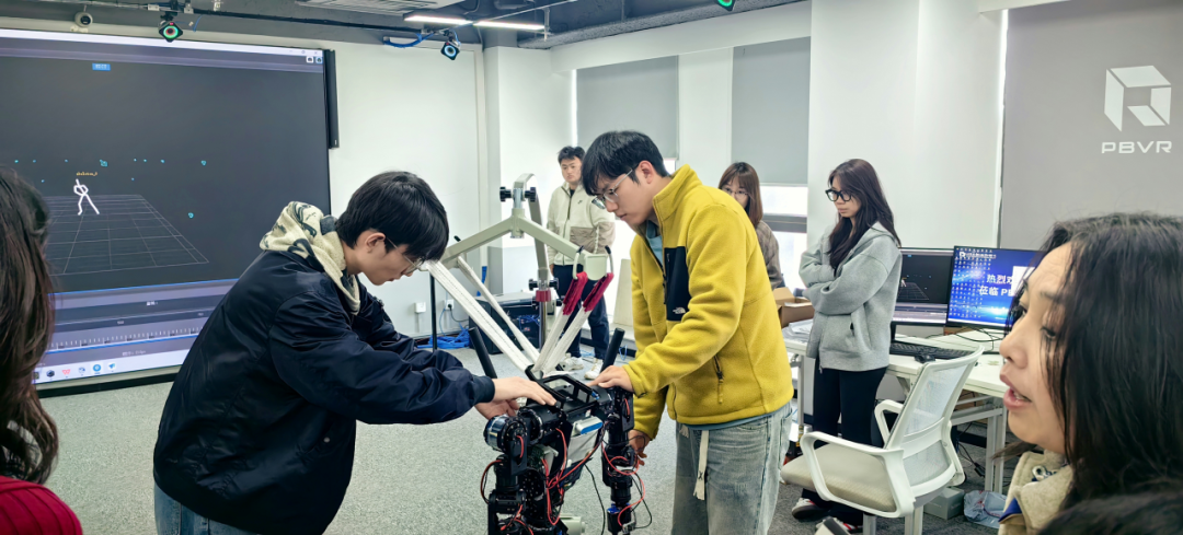 在走访过程中,公司团队深入企业研发中心、生产一线,详细了解VR技术和具身智能在智能制造、智慧医疗等领域的应用场景。公司物联网工程系主任张勇老师向研究院介绍了公司在团队建设、科研创新及人才培养方面的成果,公司2025届毕业生代表以及人工智能训练师专业技能转换培训班学员与企业技术人员现场互动、交流学习、观摩实操智能机器人设备等。