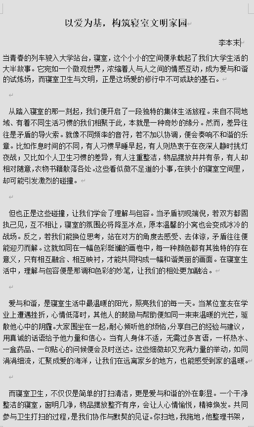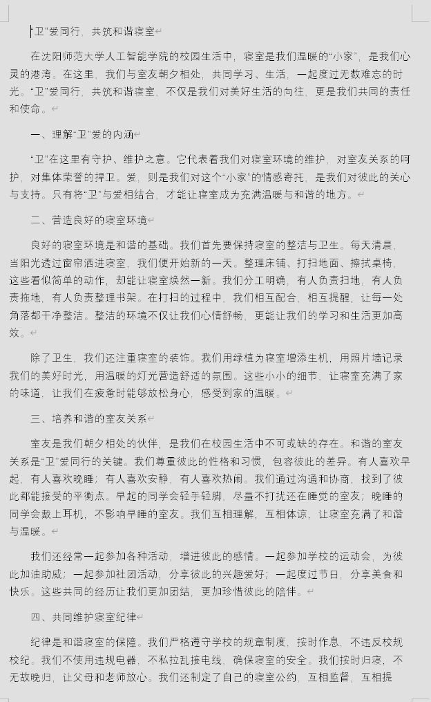 为了促进室友间的情感交流,鼓励员工用文字表达对室友的情谊、共同经历的感悟,使大家更深入了解彼此的内心世界,增进情感连接,化解潜在矛盾,让寝室氛围更加融洽和谐。征文创作要求员工梳理情感、组织语言,把内心感受转化为有条理的文字,锻炼书面表达能力,为未来学习、工作中的写作任务奠定基础。在回顾寝室生活细节时,思考如何准确传达情感和观点,有助于提高思维的逻辑性与清晰性,让更多员工受感动、有感触,形成互帮互助、团结友爱的和谐氛围。