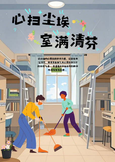 通过开展“心扫尘埃,室满清芬”海报设计活动,引导员工们的文明行为,增进宿舍成员之间友谊,促进和谐关系。借助海报创作作品,将先进思想融入宿舍文化,助力塑造高雅环境,全方位展现员工精神风貌,营造向上向善生活育人环境。
